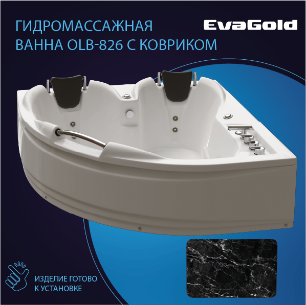 Отзывы на Гидромассажная ванна EvaGold OLB-826 150*150*60 с ковриком для ванной, черный мрамор