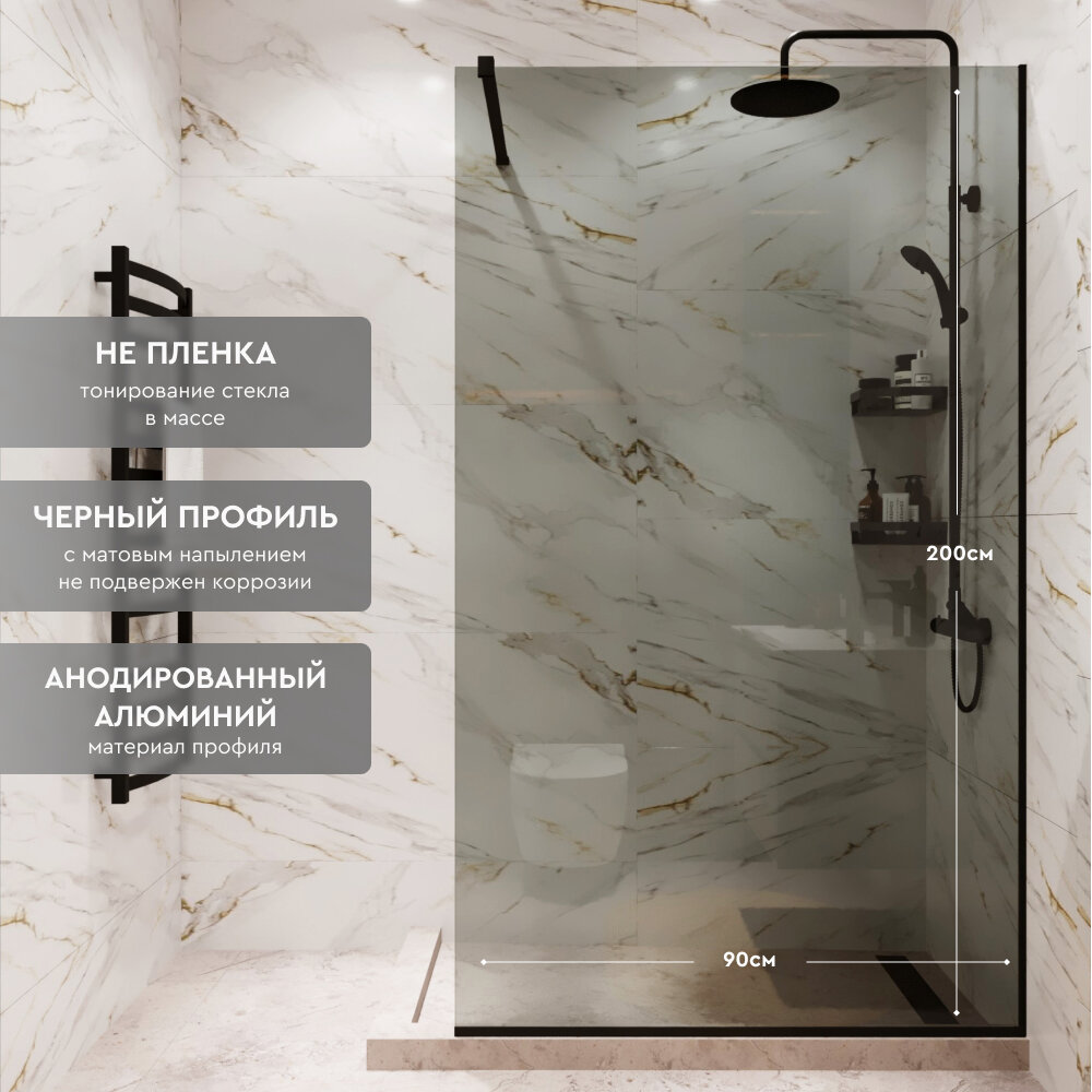 Душевая перегородка Walk In MEBELVANN 900x2000 черный профиль тонированное стекло 8 мм информация: