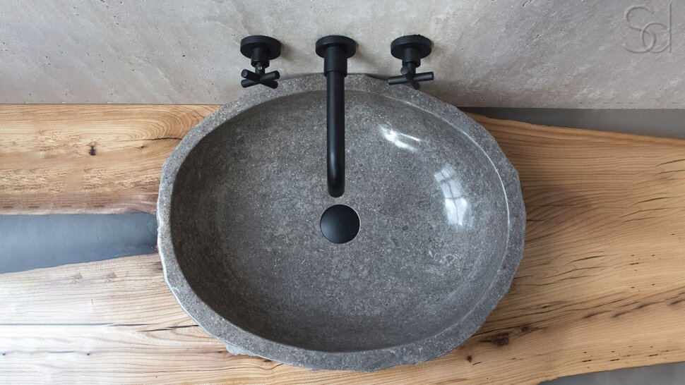 Гранитная раковина для ванной Sheerdecor Piedra 00504511408 из серого речного камня гранита
