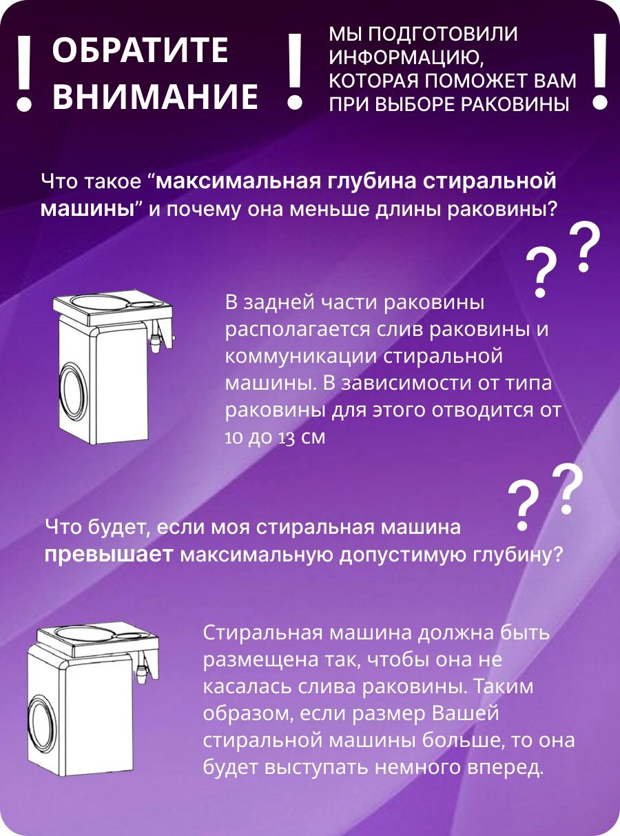 Раковина на стиральную машину Стандарт 50.2 информация: