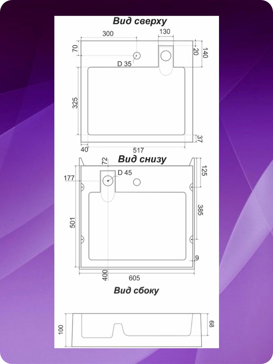 | Диаметр сливного отверстия | 45 мм |