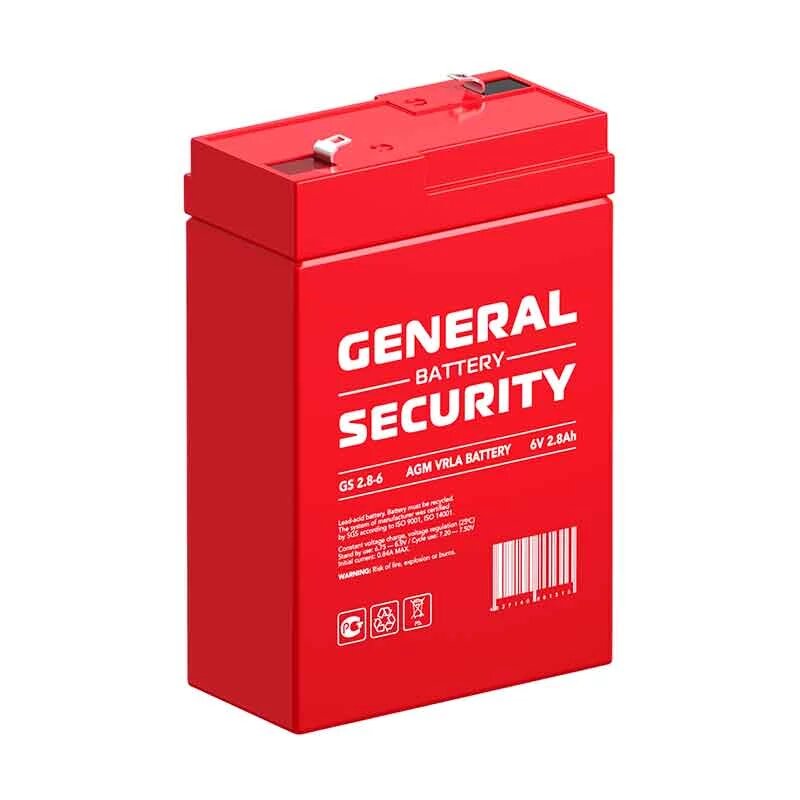 Аккумулятор General Security GS 1.3-6 (6В, 1.3Ач / 6V, 1.3 Ah / вывод F1)