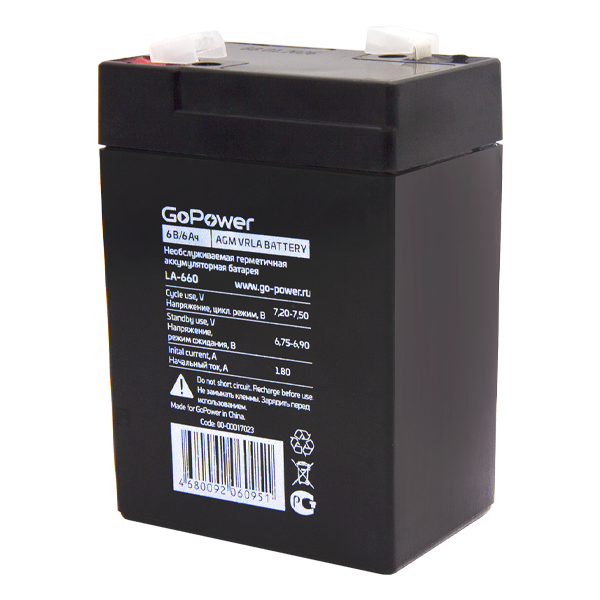 GoPower LA-660 (6V / 6Ah) Аккумулятор свинцово-кислотный GoPower LA-660 6V 6Ah (1/20) 00-00017023 информация:
