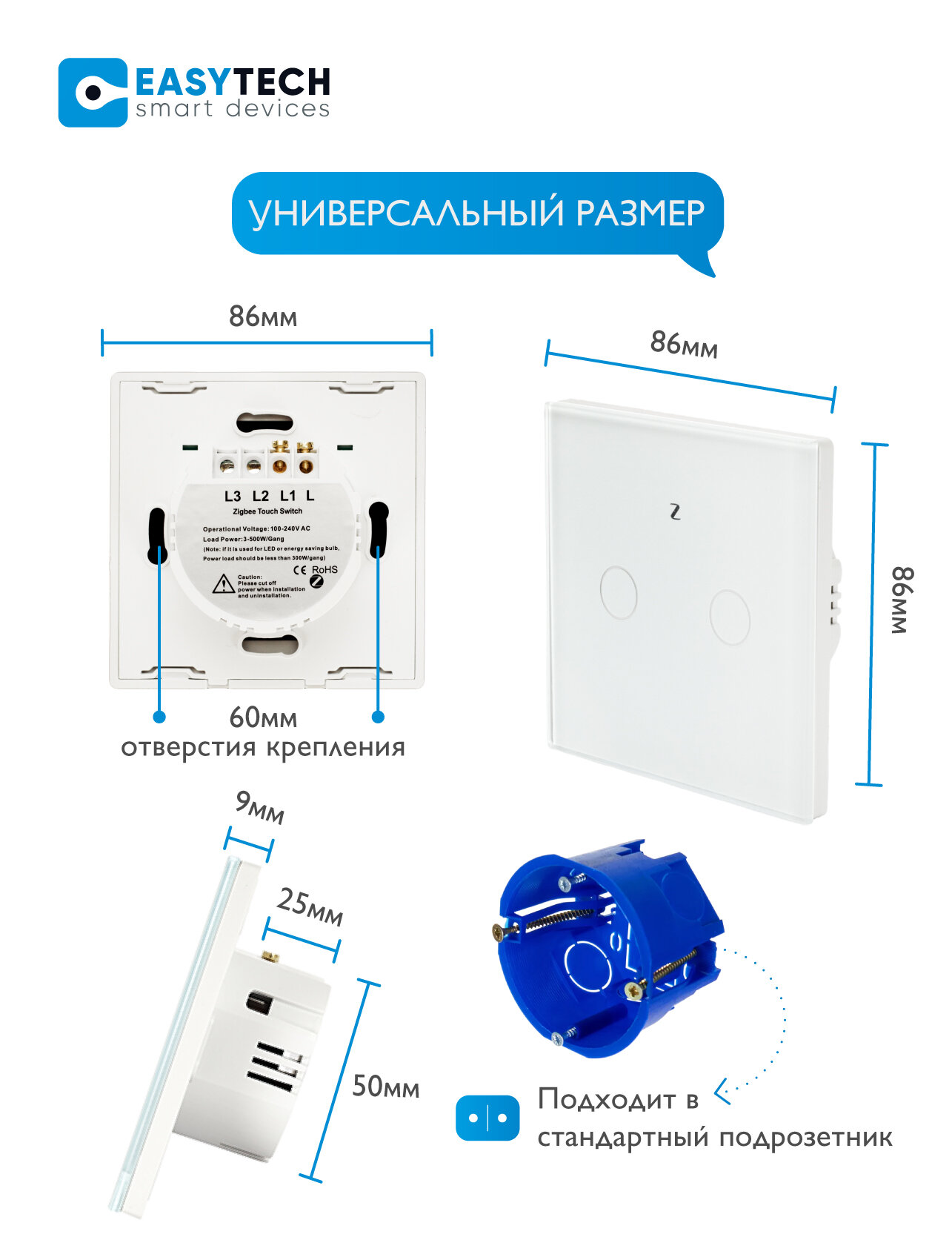 Умный Zigbee стеклянный сенсорный выключатель с Алисой Easy Tech