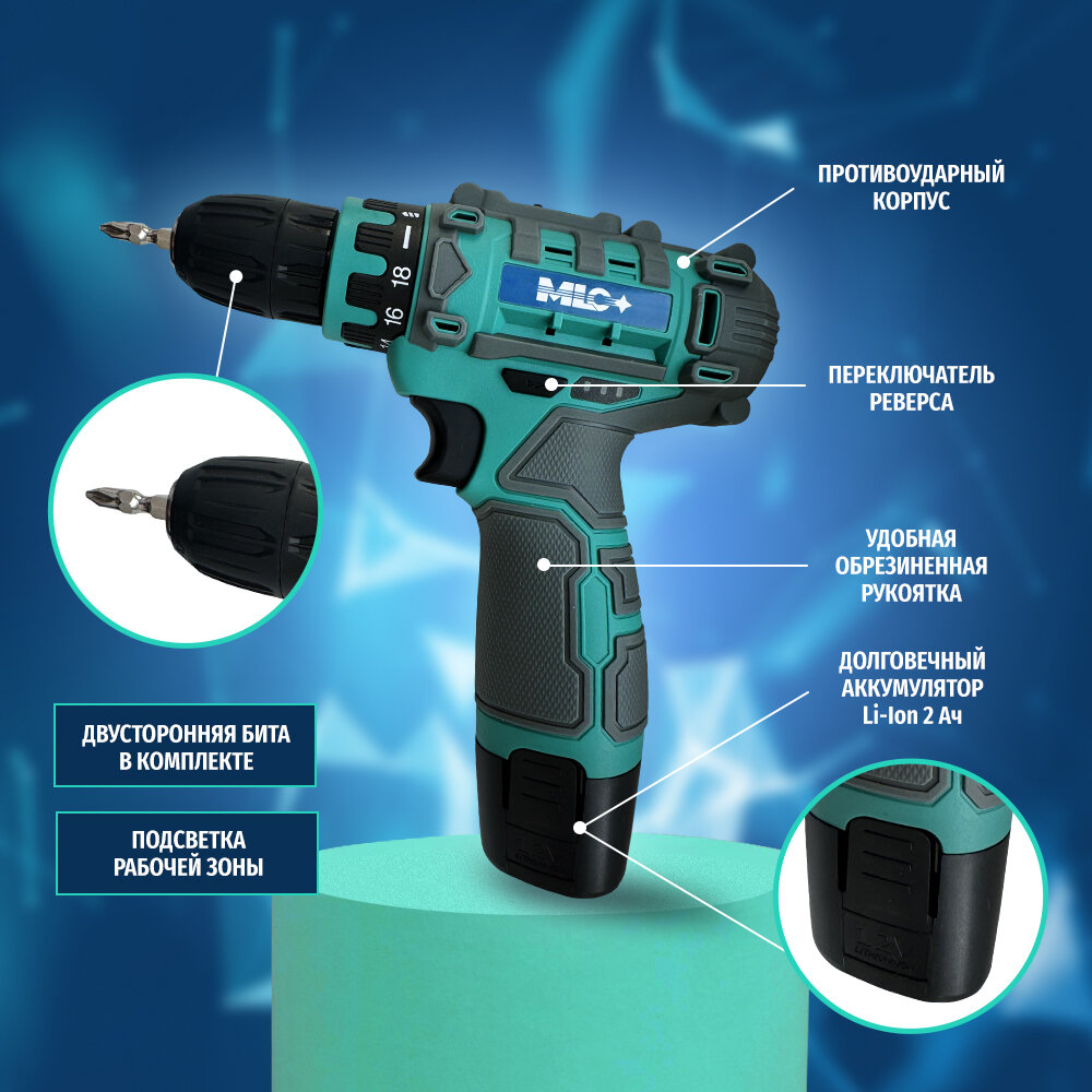 Дрель-шуруповерт MLC аккумуляторная 12V информация: