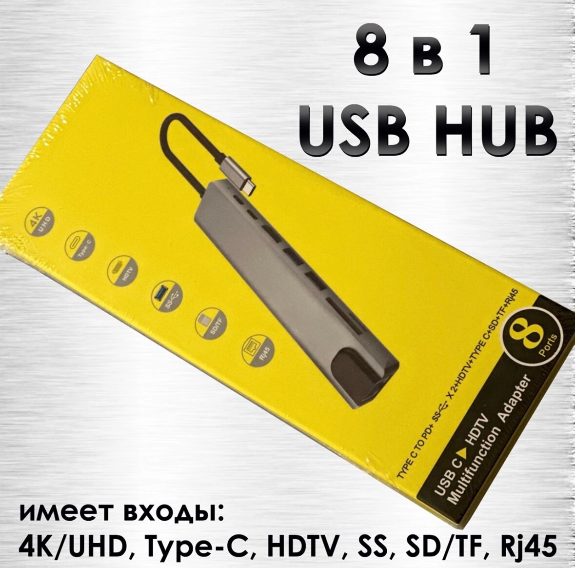 Hub type-c 8 портов, концентратор, HDMI, Type-C, USB 3.0