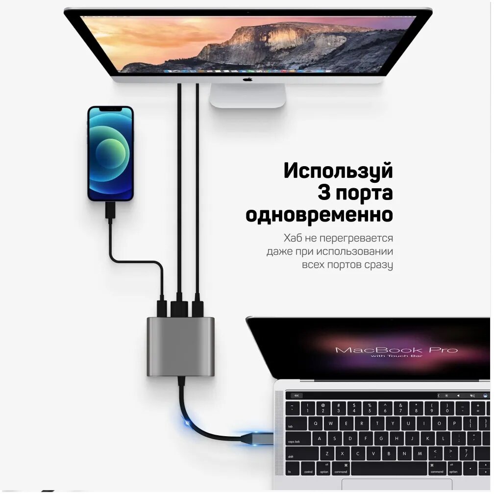Переходник usb hub 3 в 1. USB разветвитель, type c hdmi, док станция type c, usb хаб для macbook информация: