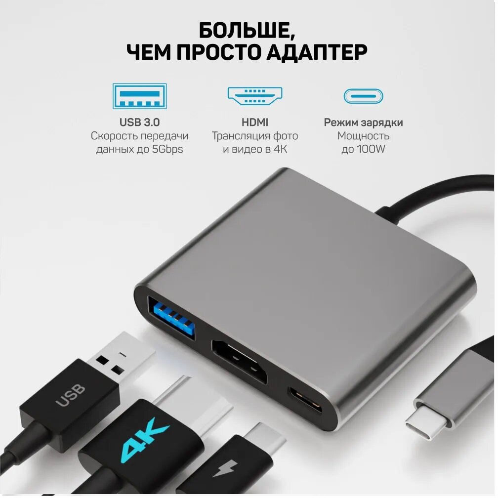 10 цен на Переходник usb hub 3 в 1. USB разветвитель, type c hdmi, док станция type c, usb хаб для macbook