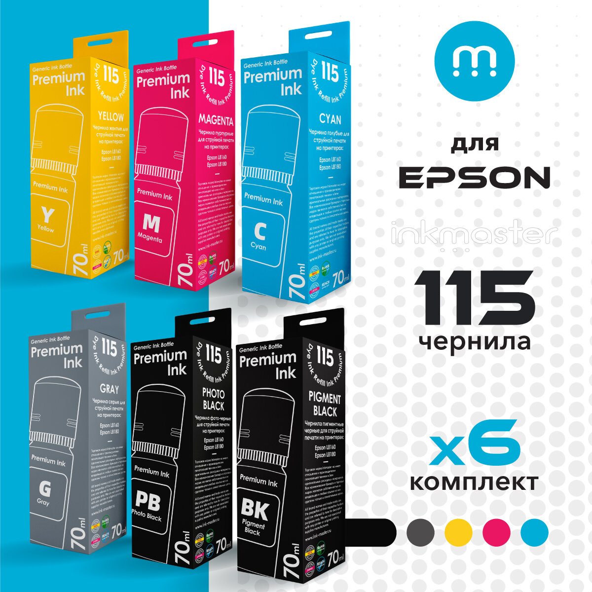 10 цен на Чернила для заправки струйного принтера Epson 115 L8160 / L8180 комплект 6 цветов по 70 мл совместимые, Inkmaster