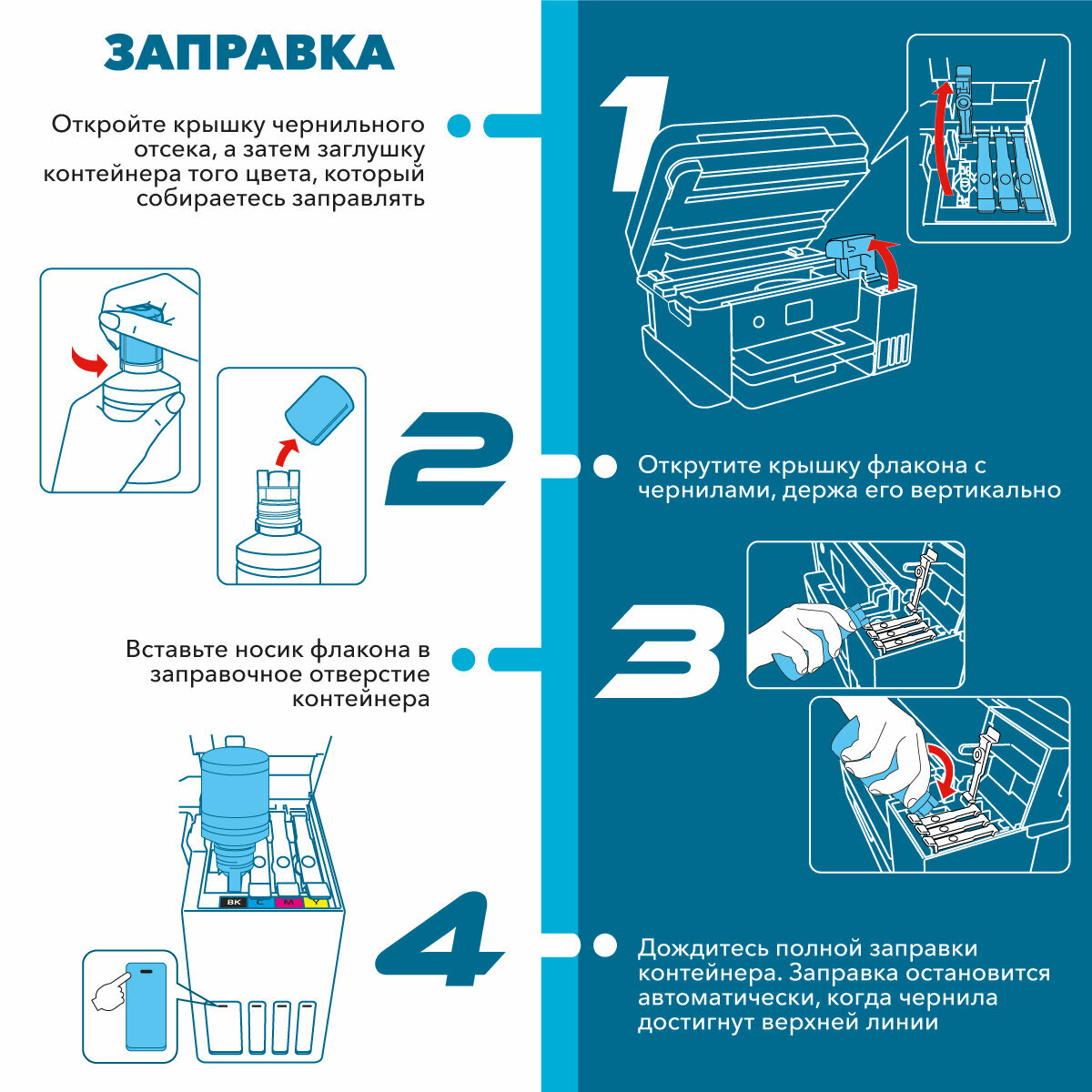 Чернила универсальные для принтеров HP 21/121/122/123/132/135/178/305/650/652/655, краска для заправки принтера, набор 4 цвета по 100 мл, Inkmaster