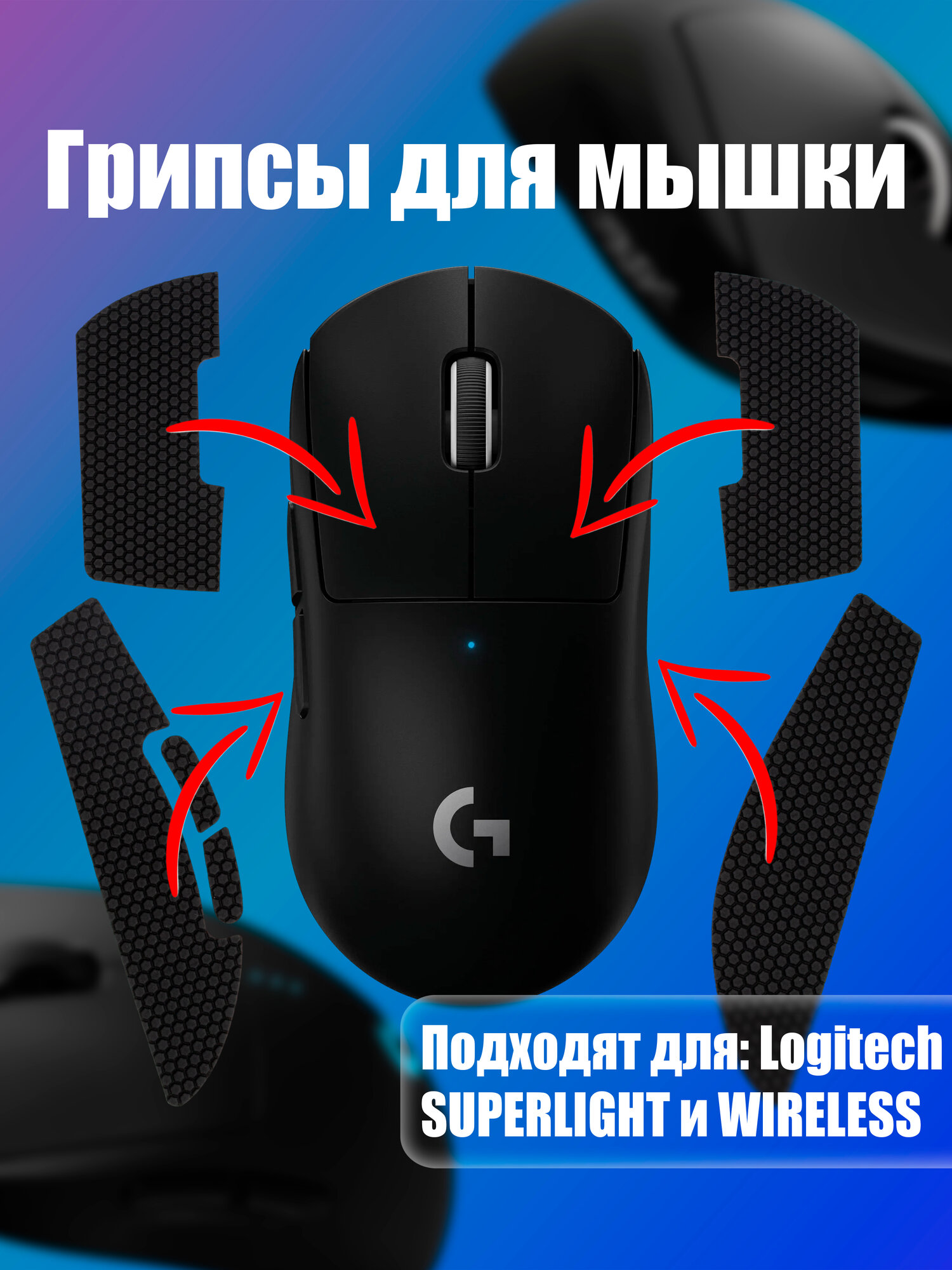 Грипсы для мышки универсальные Logitech G Pro X Superlight и G Pro Wireless, Противоскользящие накладки для мыши, черный информация: