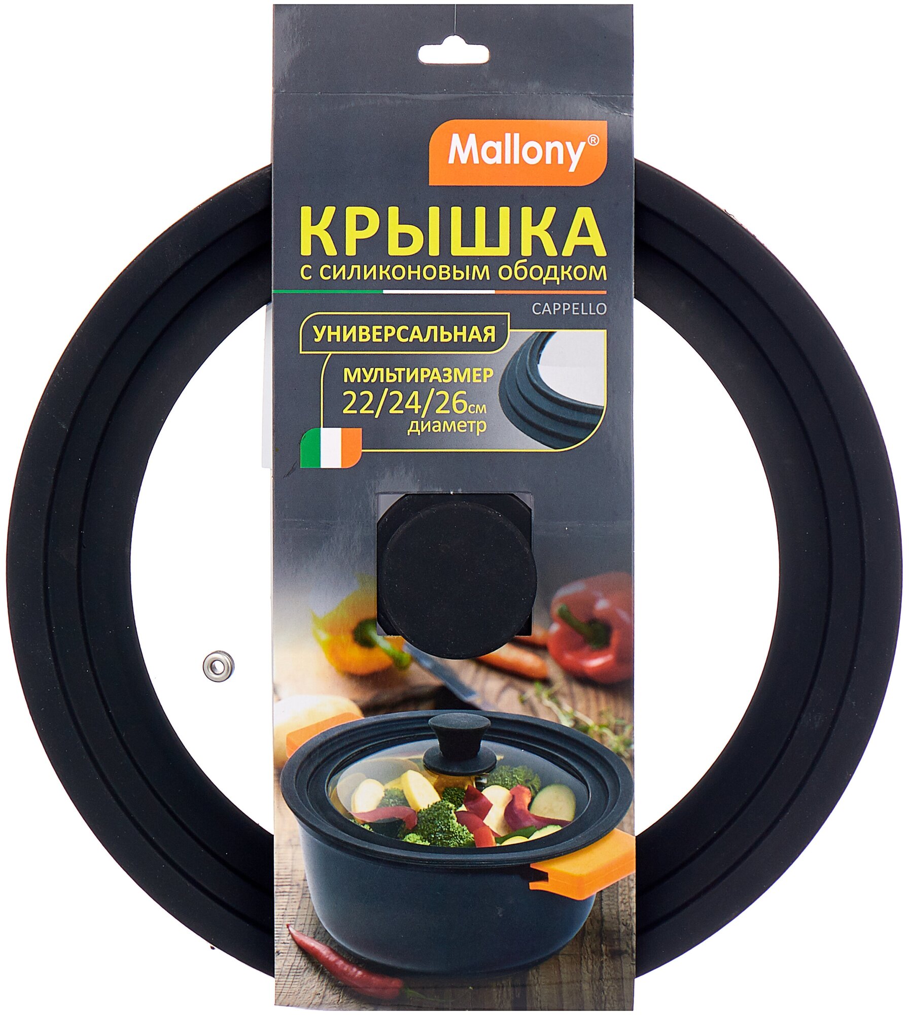 Крышка универсальная из закал стекла с сил ободком_мультиразмер: 22/24/26см, CAPPELLO,тм Mallony информация:
