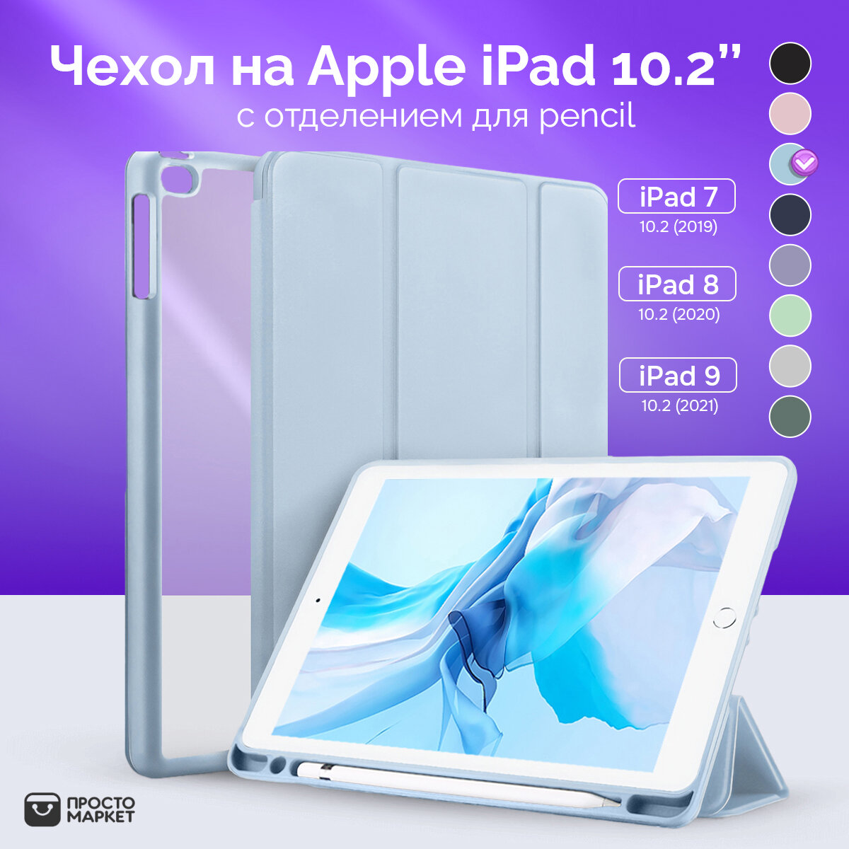 10 цен на Чехол-обложка для Apple iPad 7/iPad 8/iPad 9 10.2" (голубой)/Чехол для стилуса Apple Pencil/ Чехол с подставкой/Обложка Smart Cover iPad 10.2