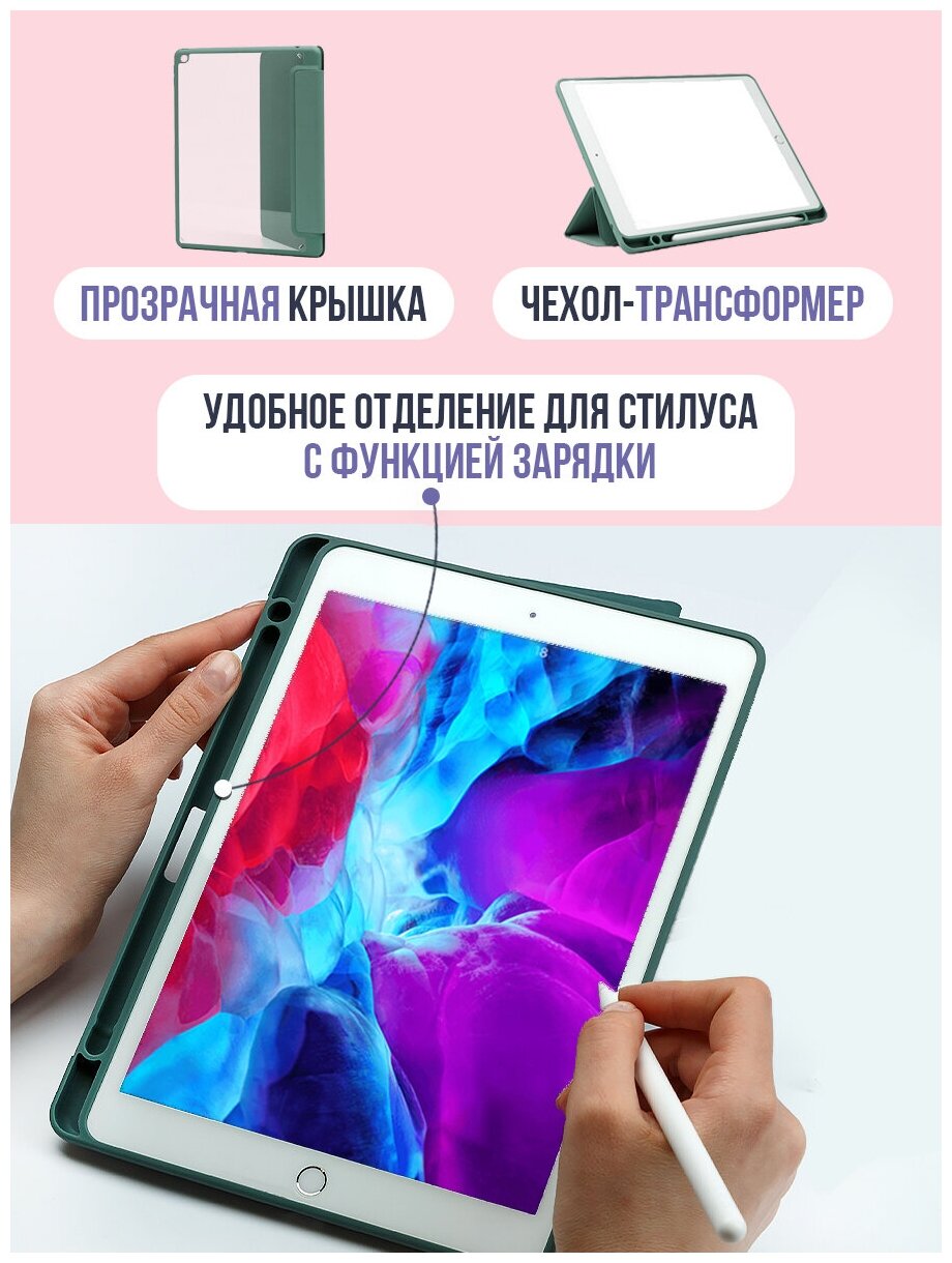 Чехол-обложка для Apple iPad 7/iPad 8/iPad 9 10.2" (зеленый)/Чехол для стилуса Apple Pencil/ Чехол с подставкой/Обложка Smart Cover iPad 10.2 1 190 ₽