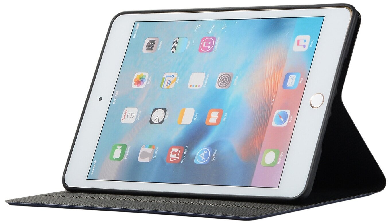 Чехол для планшета Apple iPad 9.7 (2017/2018), кожаный, трансформируется в подставку (темно-синий)