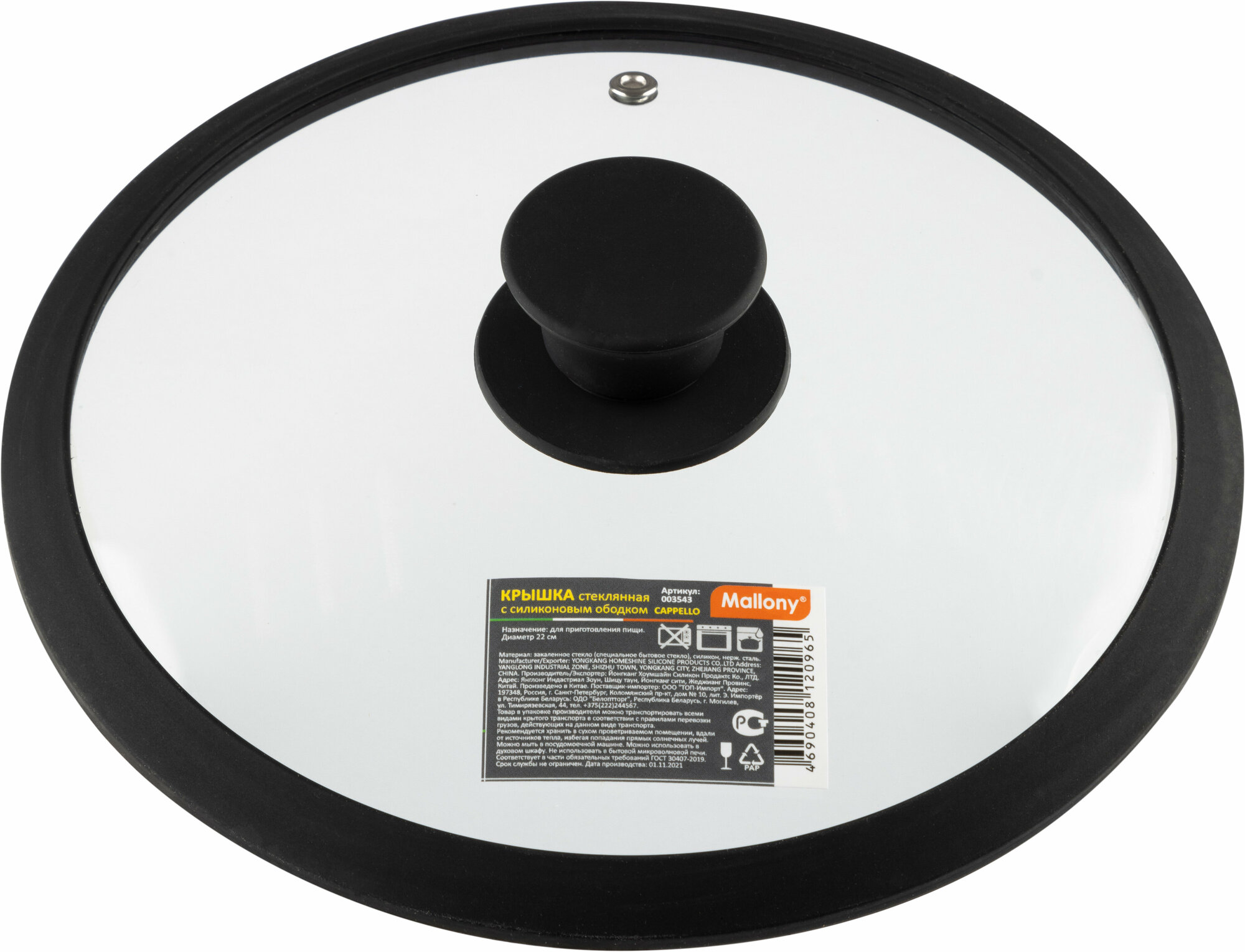 Крышка стеклянная Mallony Cappello, 22 см, силиконовый ободок, паровыпуск информация: