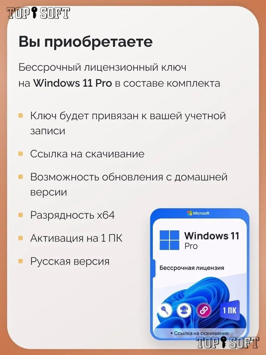 Windows 11 PRO ключ с привязкой к учетной записи Microsoft, Русский язык, Бессрочная лицензия