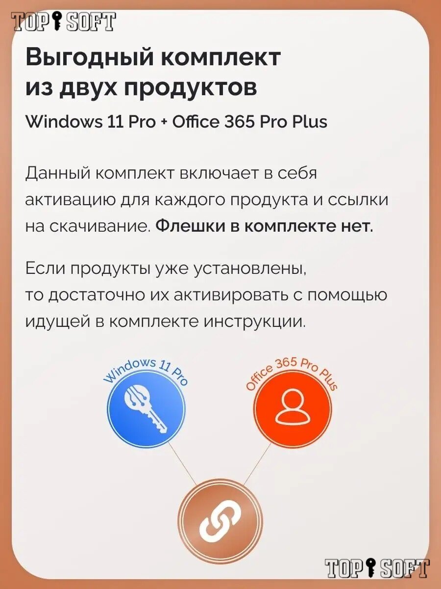 Комплект Windows 11 Pro + Office 365 Pro Plus Ключ активации Microsoft (Комплект на 1 ПК, Русский язык, Бессрочная лицензия) информация: