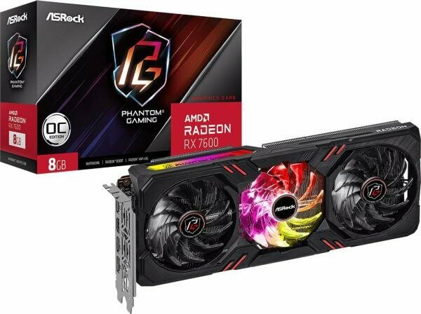 Видеокарта ASRock Radeon RX 7600 Phantom Gaming 8G OC PCI-E 8192Mb GDDR6 128 Bit Retail RX7600 PG 8GO информация:
