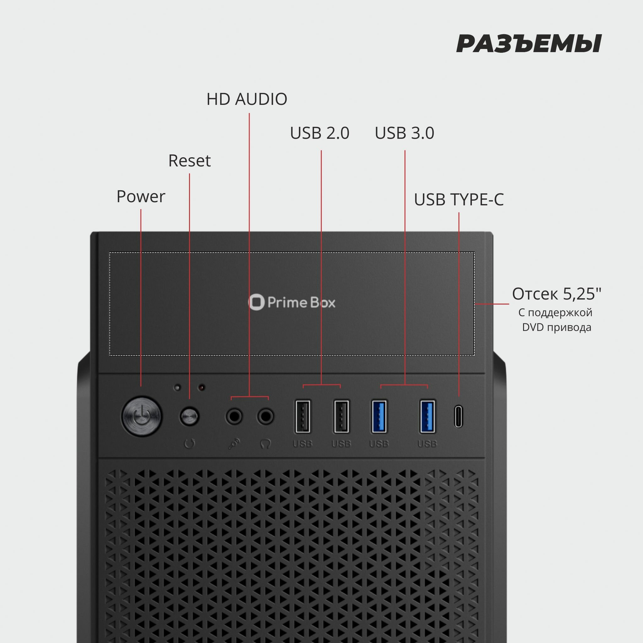 10 цен на Корпус Prime Box S340 (2 - USB 2.0, 2 - USB 3.0, USB-C, 5.25") Micro-ATX, Mini-ITX