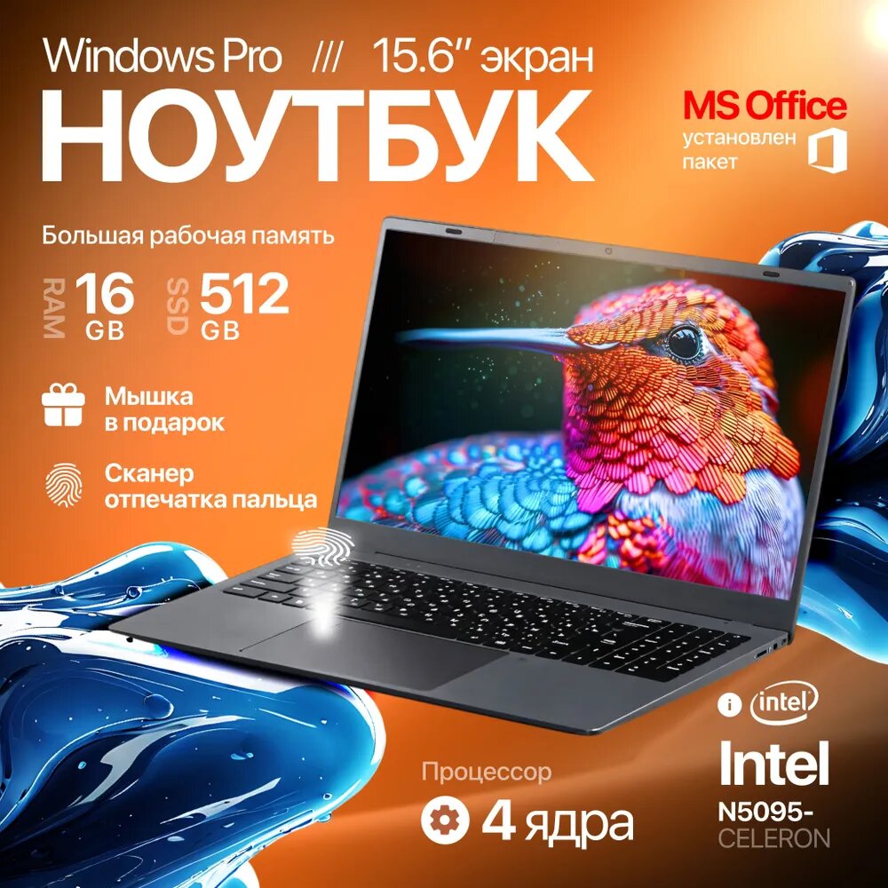 10 цен на Ноутбук игровой процессор INTEL CELERON N5095 (2.00 GHz, 4 ядра) / DDR4 16 GB/ NAND FLASH 512 GB/ 15.6 inch/ Widows 10.0 pro, Black