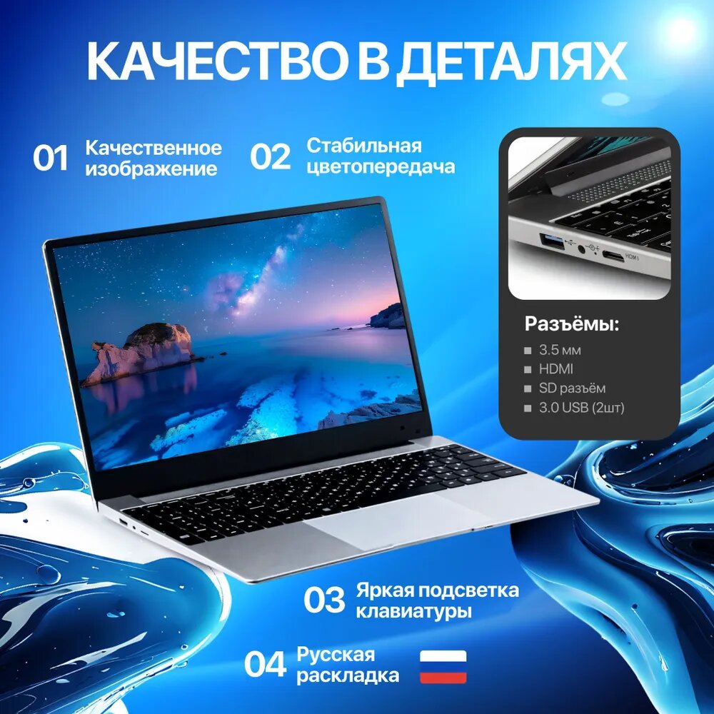15.1" Ультрабук для работы и учебы, Notebook, RAM 16 ГБ, SSD 1ТБ, IPS Full HD 1920x1080, Intel N5095, Windows 11 pro, цвет Mid Gray, русская раскладка