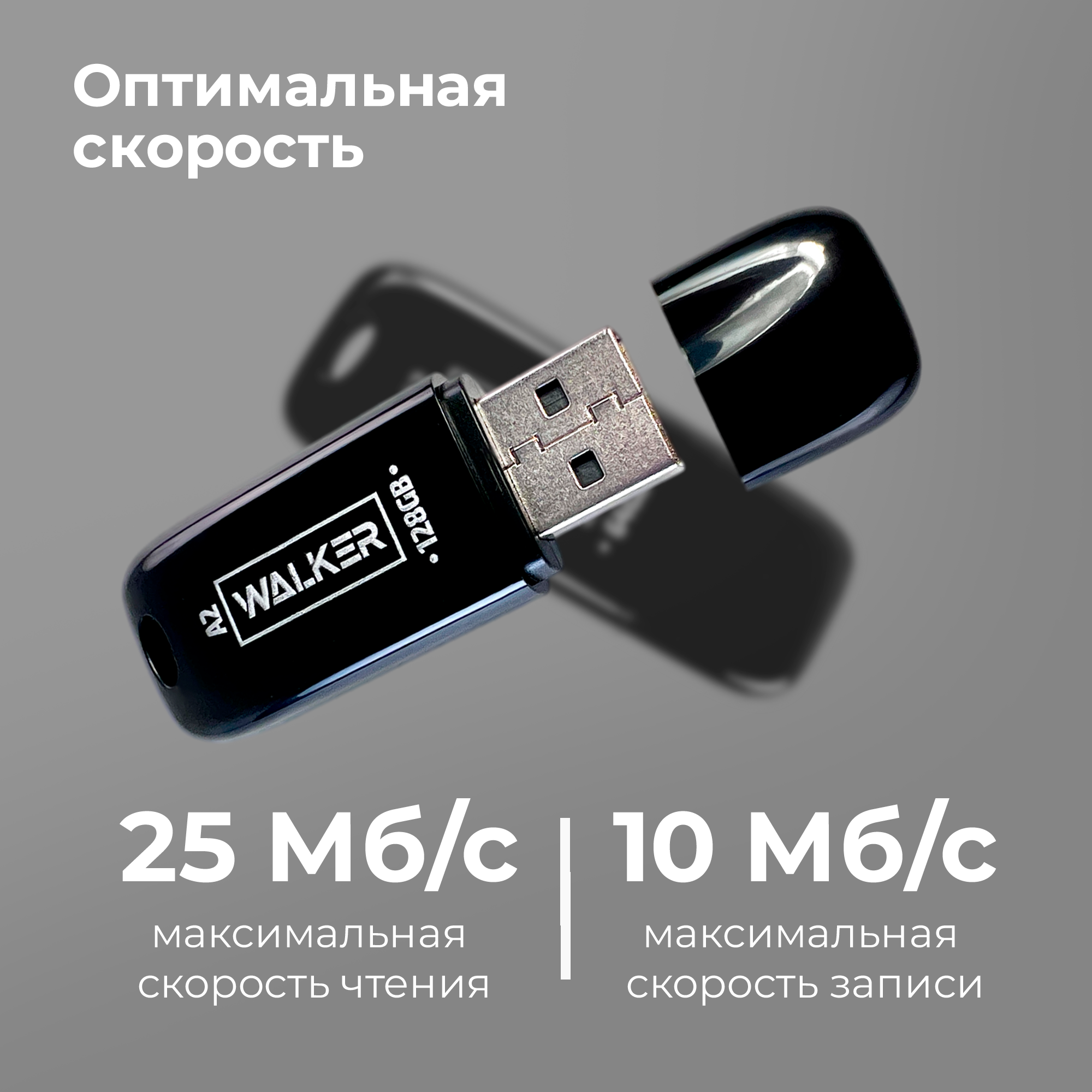 Флеш карта накопитель 128 Gb, USB 2.0, WALKER A2, флешка для компьютера и ноутбука, внешние накопители информации, flash-накопитель в пк, черный информация: