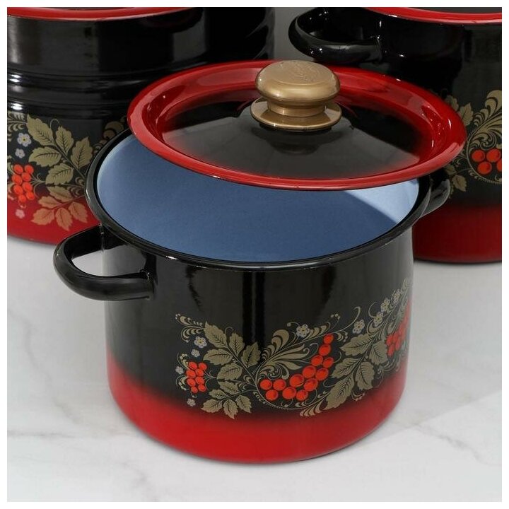 Набор кастрюль "Рябинка", 3 предмета: 3.5/5.5/8 л, эмалированные крышки, индукция, цвет чёрно-красный 5 742 ₽