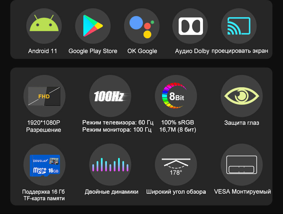 Монитор ZEUSLAP Z18TV PRO с Google TV для ПК, ноутбука, телефона и Xbox информация:
