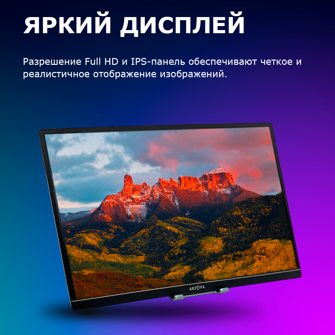 Монитор портативный, для компьютера, черный, ARZOPA A1 Gamut Slim 14" информация:
