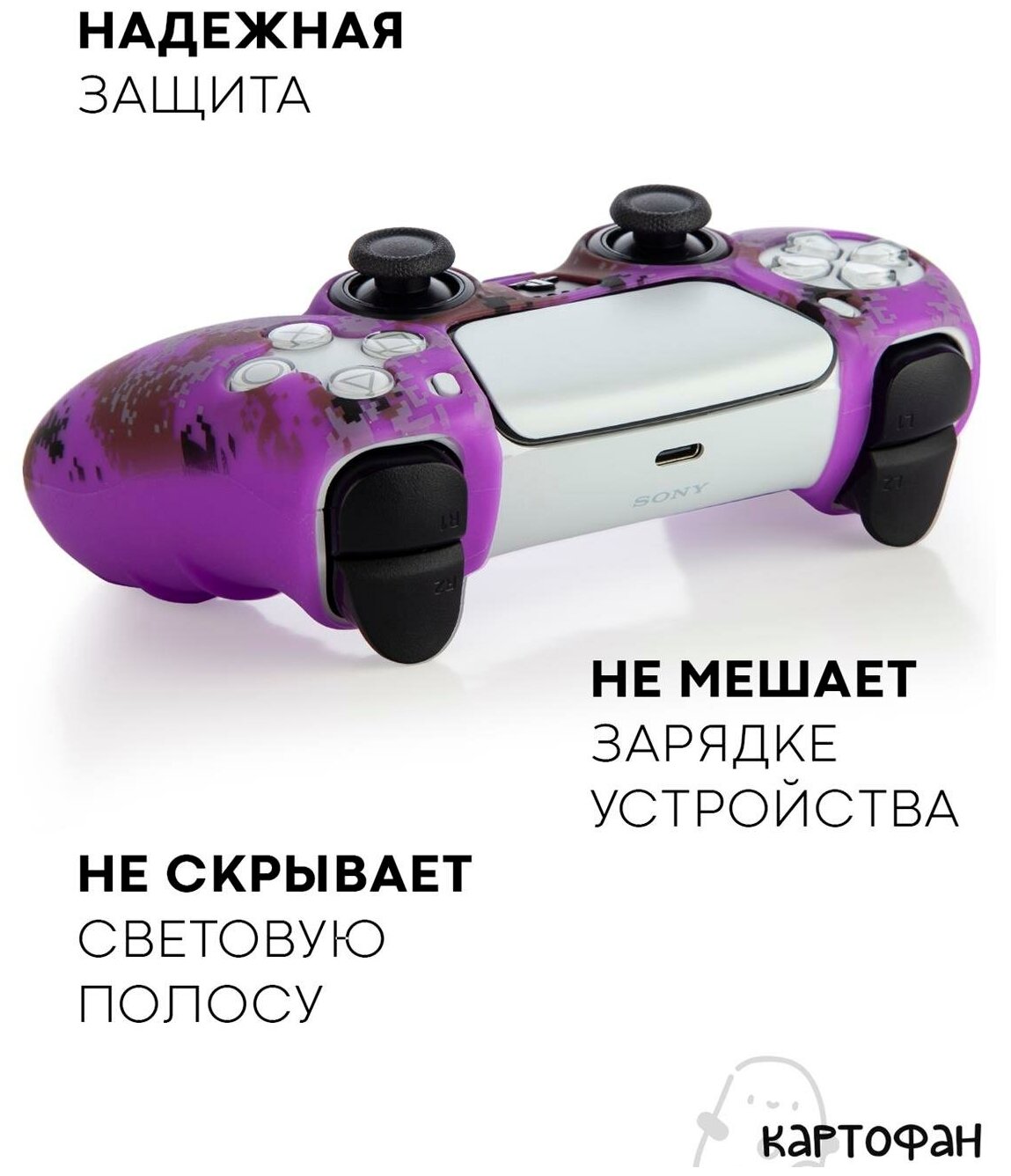 10 цен на Защитный силиконовый чехол для джойстика Sony PlayStation 5 (накладка для геймпада Плейстейшен 5), бренд картофан, с рисунком Битый пиксель