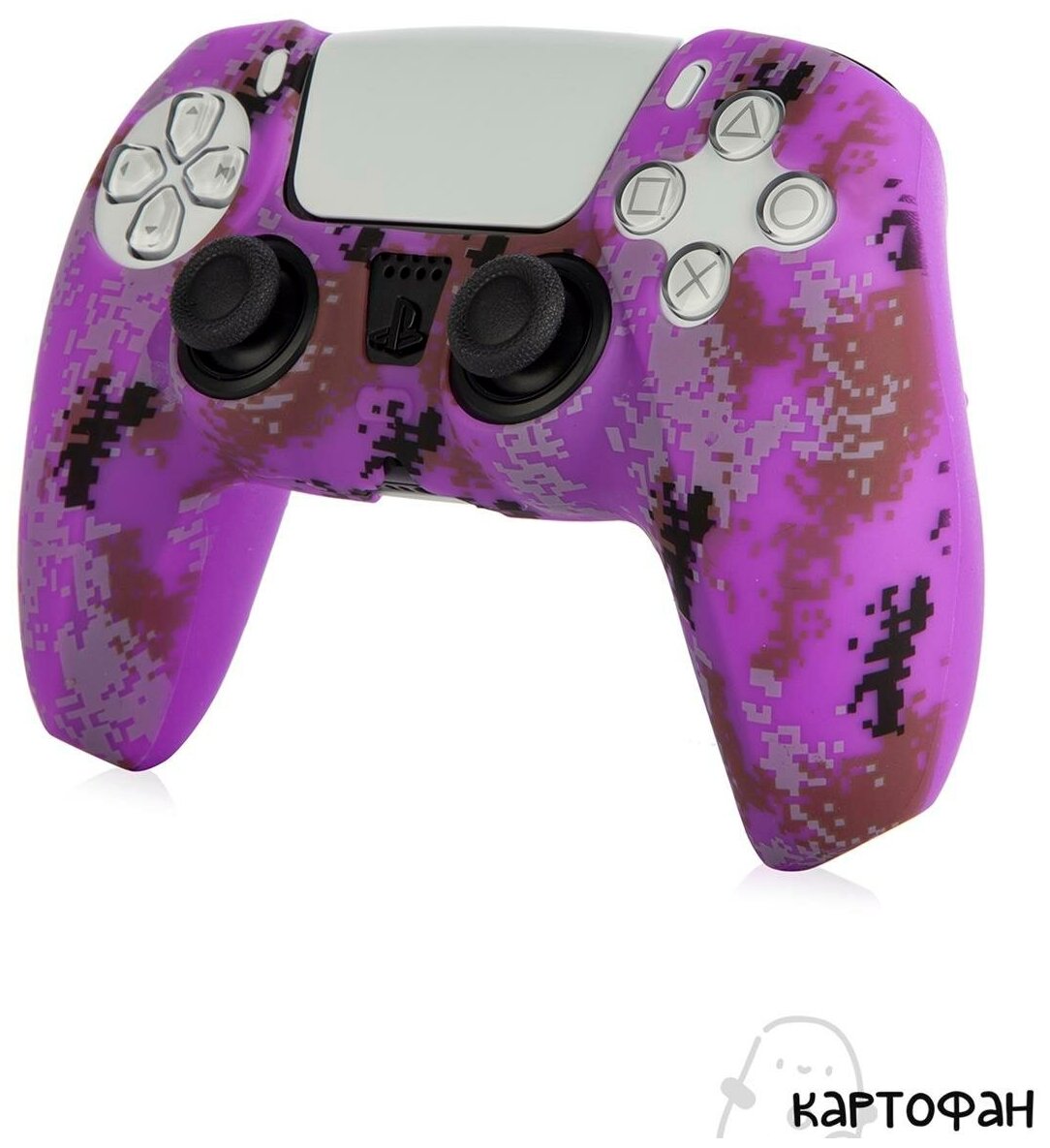 Отзывы на Защитный силиконовый чехол для джойстика Sony PlayStation 5 (накладка для геймпада Плейстейшен 5), бренд картофан, с рисунком Битый пиксель