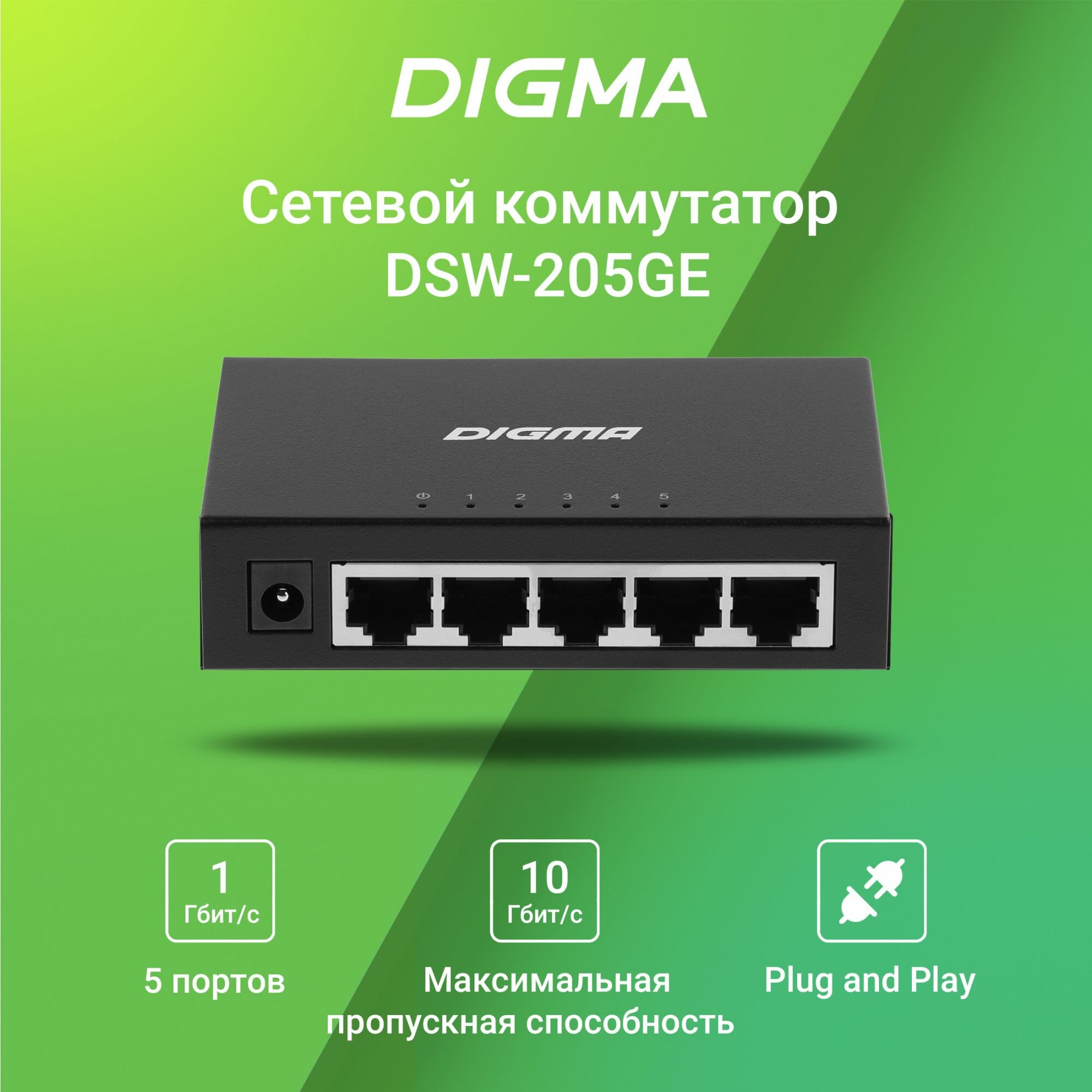 Коммутатор Digma DSW-205GE 5x1Гбит/с неуправляемый информация: