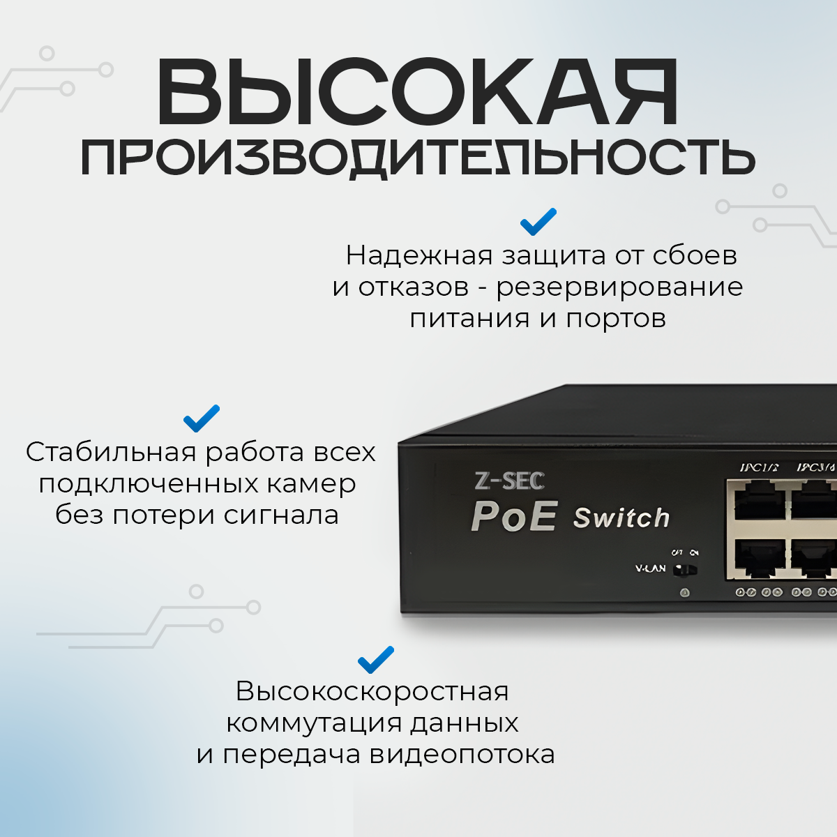 Отзывы на Коммутатор PoE Z-SEC-1010MN 8 портов PoE 100, 2 порта Uplink 100, неуправляемый, настольный, настенный свитч