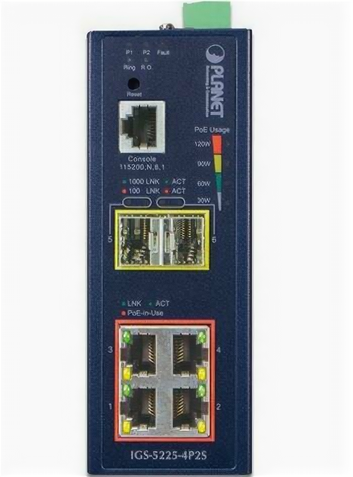 10 цен на PLANET IGS-5225-4P2S IP40 Industrial L2+/L4 4-Port 1000T 802.3at PoE + 2-Port 100/1000X SFP Full Managed Switch (-40 to 75 C, dual redundant power in