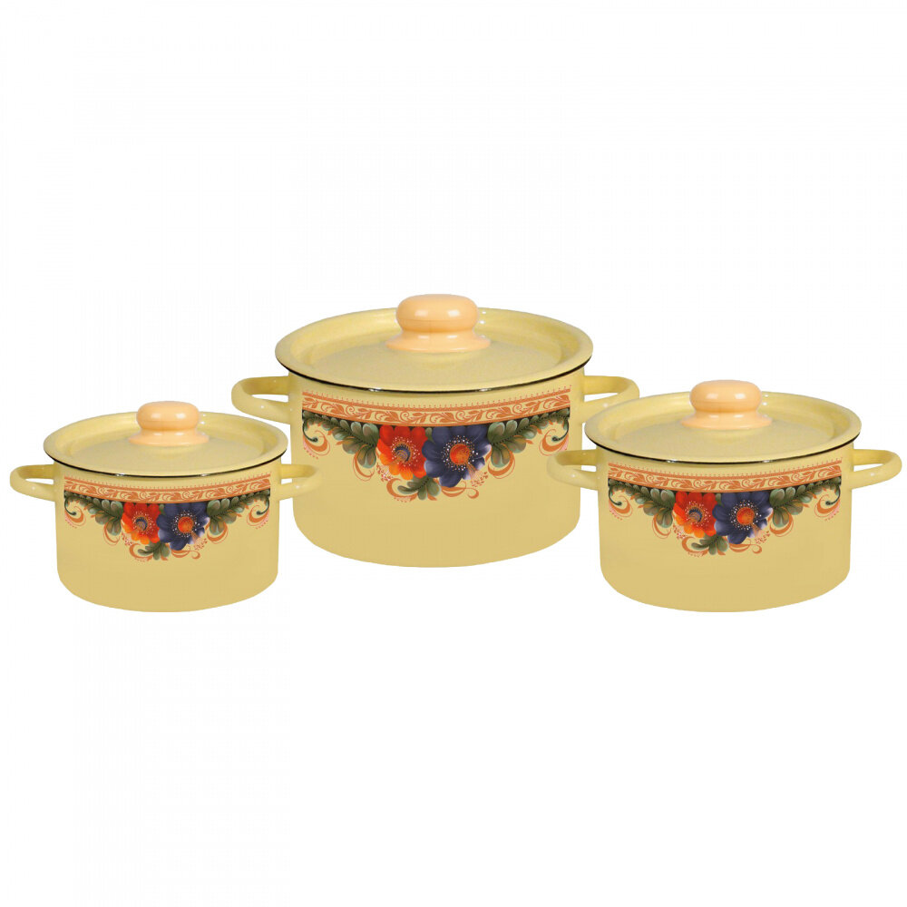Стальэмаль Набор кастрюль «Вологда», 3 предмета: 1,5 л, 2,9 л, 3,9 л