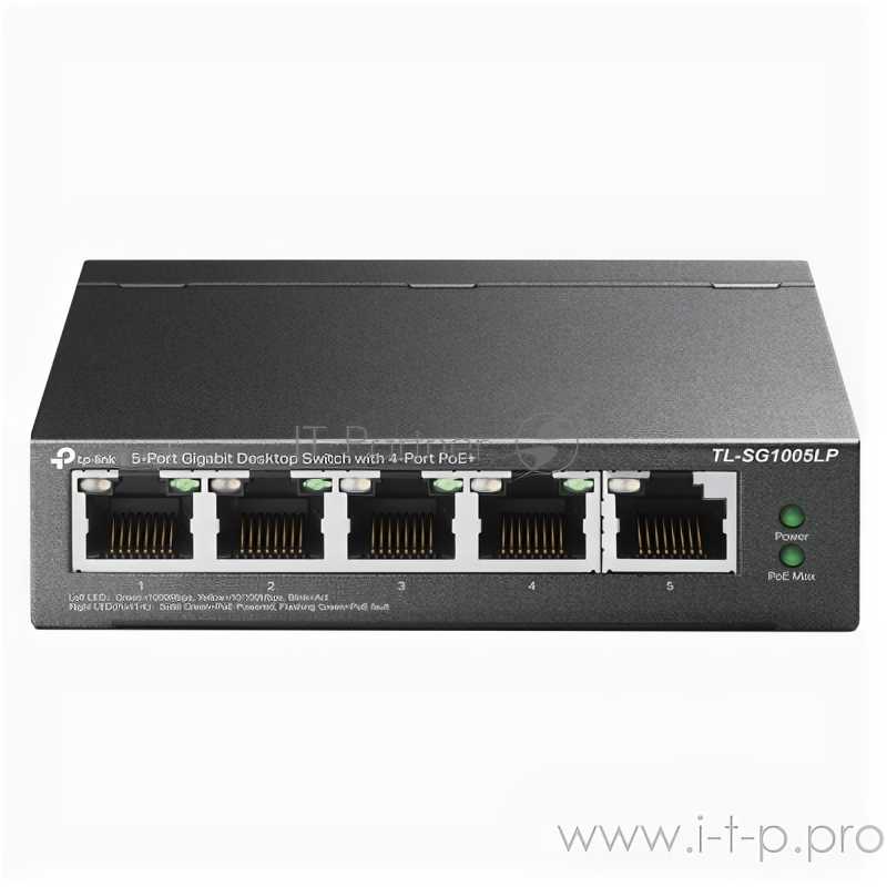 Коммутатор 5-Port Gigabit Unmanaged Switch with 4-Port PoE+, metal case, desktop mount, PoE budget 4 . информация: