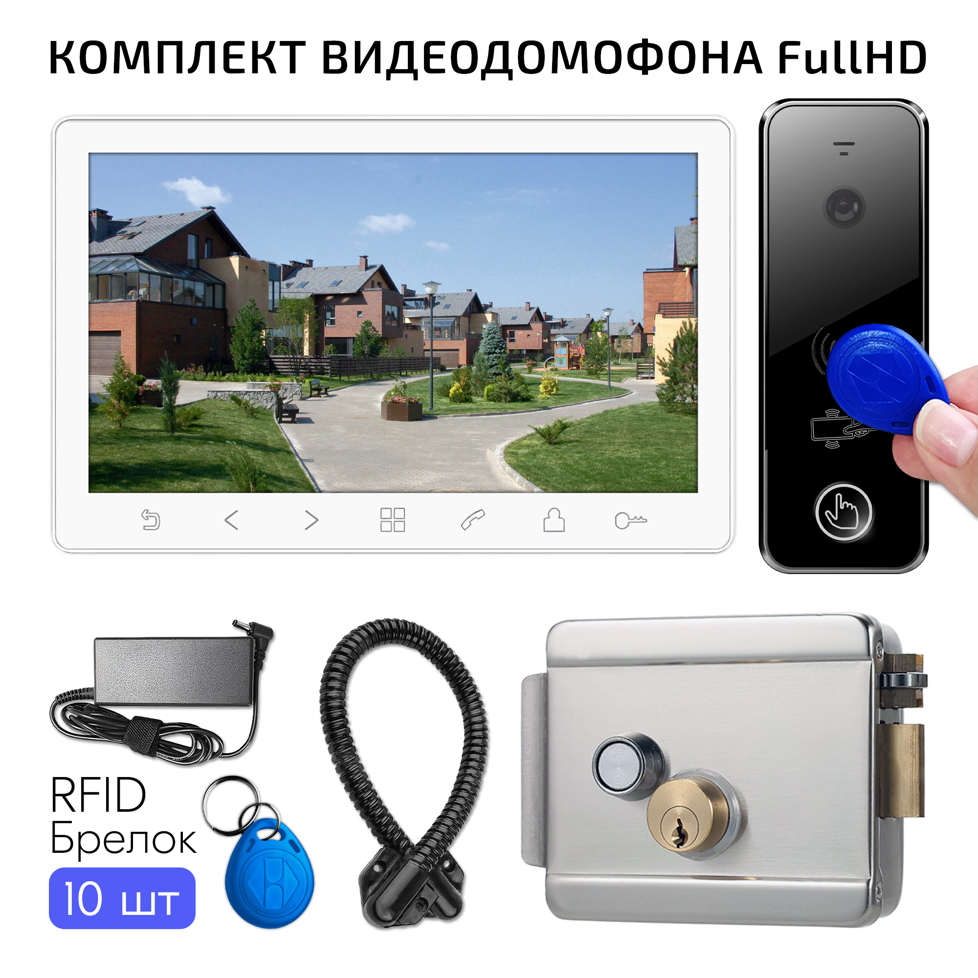 Комплект видеодомофона для дома FullHD, цветной монитор 7 дюймов и вызывная панель со встроенным считывателем, Белый информация: