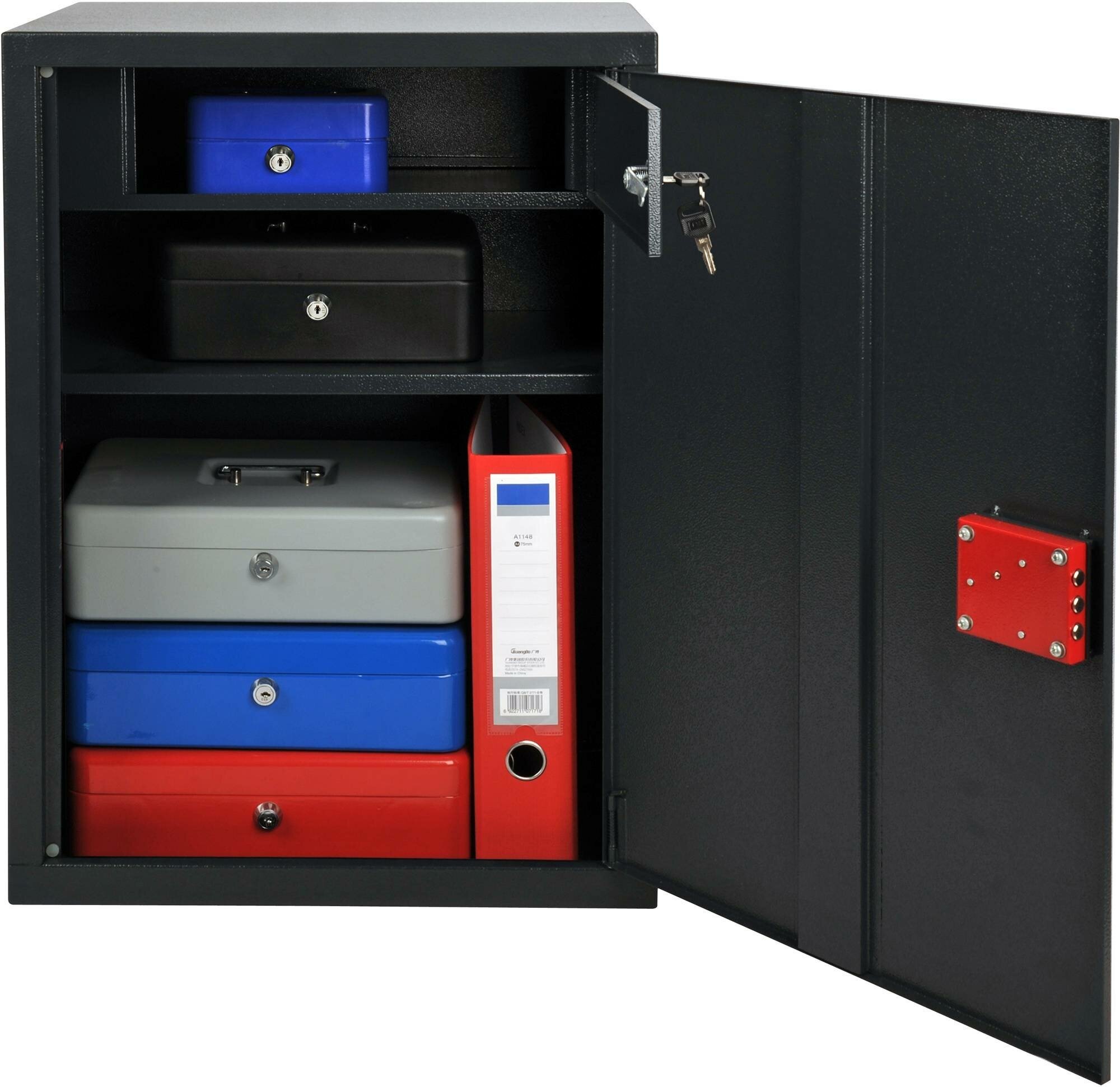 Цельностальной сейф, 3 слоя дополнительного пространства внутри, прочный и долговечный.