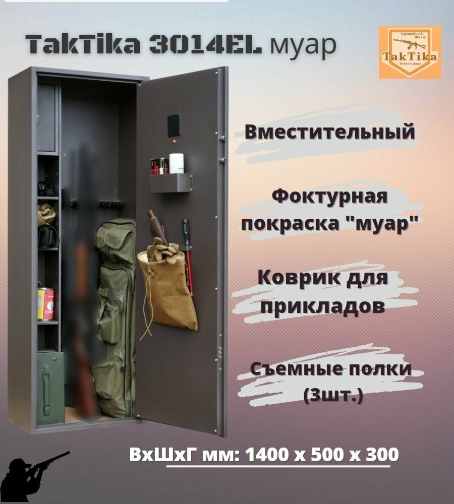 Оружейный сейф для оружия TakTika 3014EL муар на 4 и 5 стволов с кодовым замком, В140хШ50хГ30 см информация: