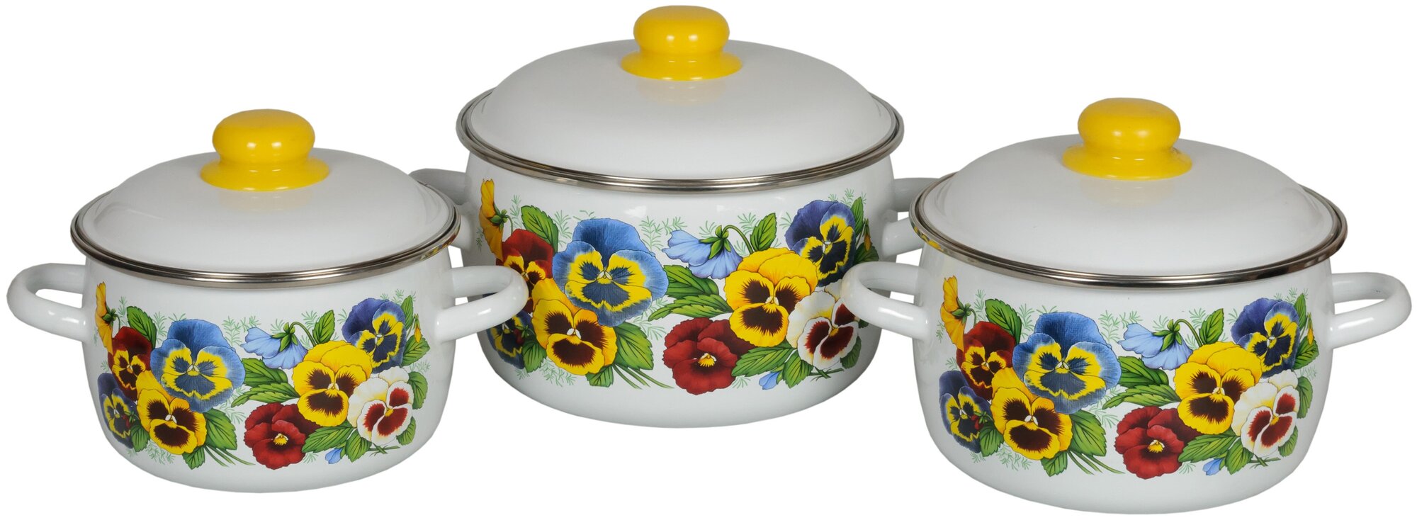 Набор посуды № 02 анютины глазки (к. 2, 3, 4л) эмаль