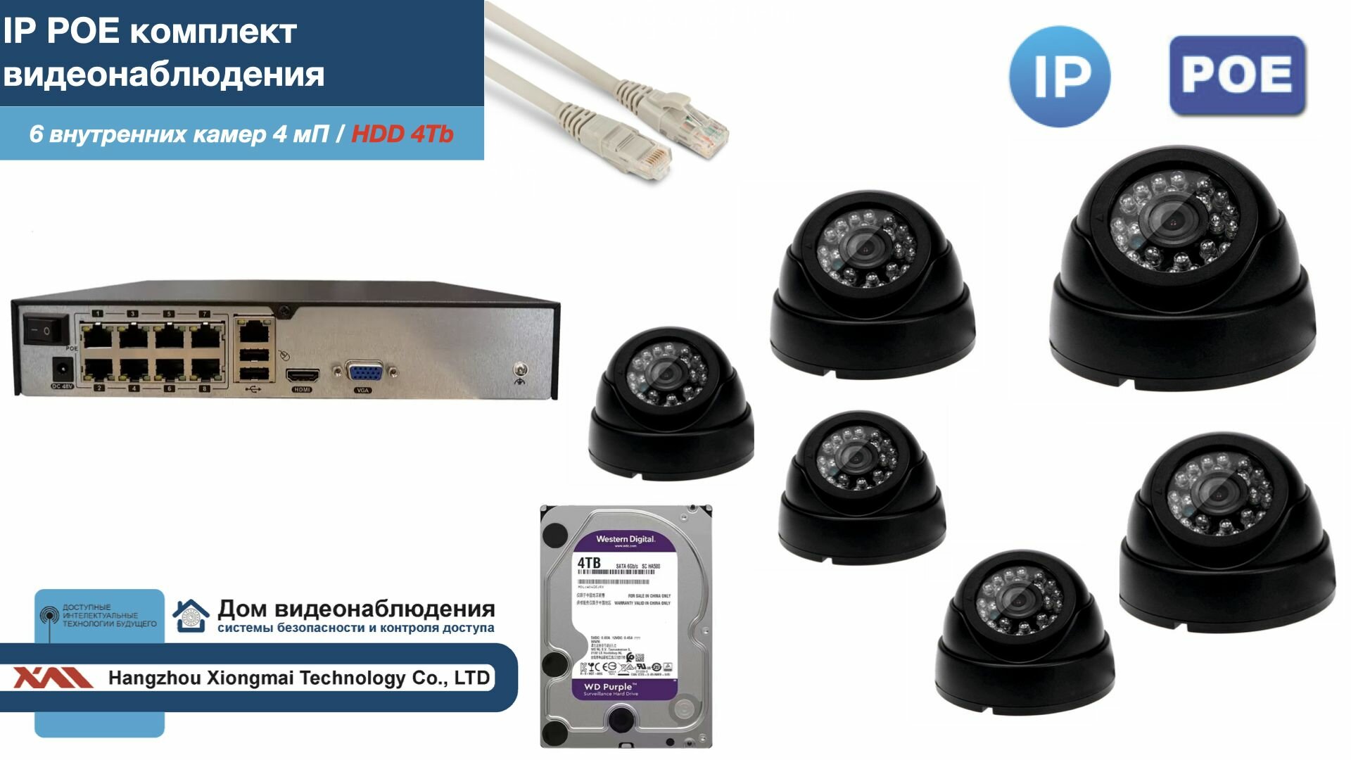 10 цен на Полный IP POE комплект видеонаблюдения на 6 камер (KIT6IPPOE300B4MP-2-HDD4Tb)