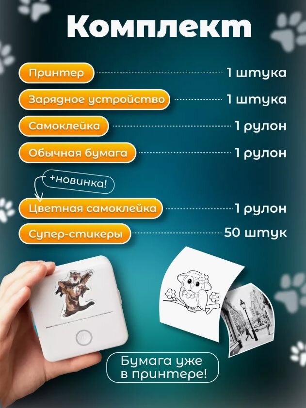 Мини принтер беспроводной компактный портативный, термопринтер, карманный фотопринтер информация: