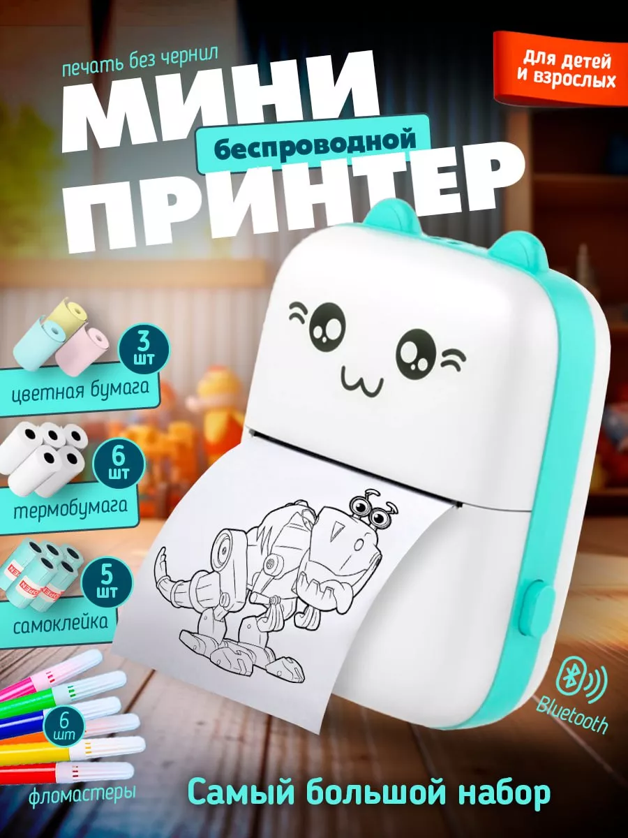 10 цен на Беспроводной мини-принтер для телефона и наклейки голубой