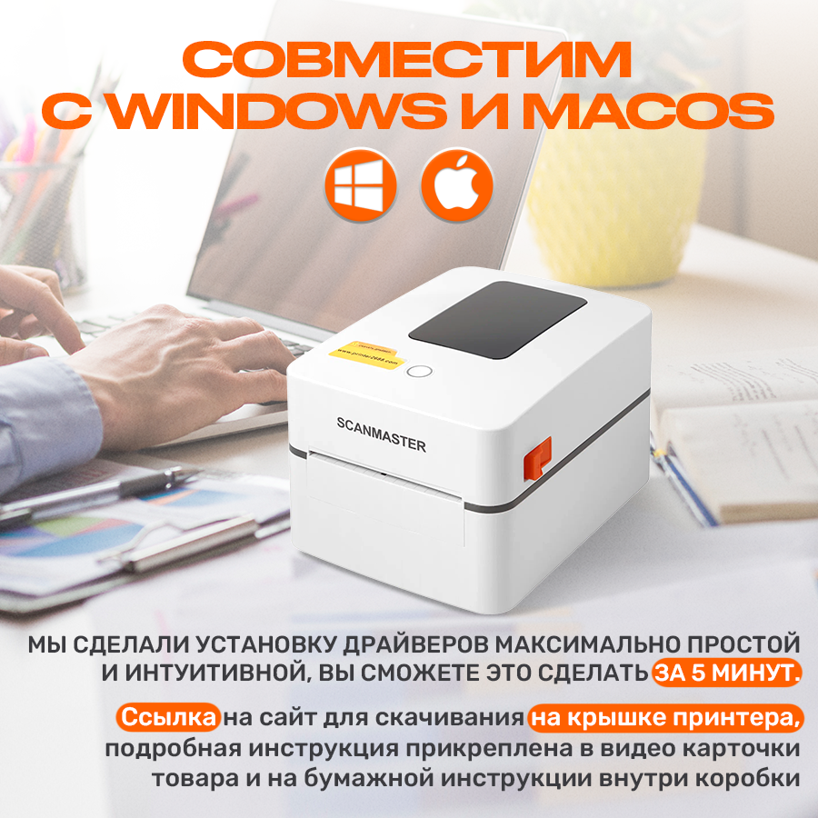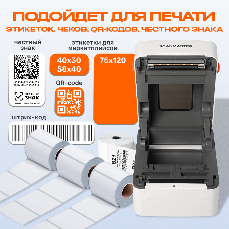 10 цен на Термопринтер для этикеток и наклеек SCANMASTER M4201 (белый) (Windows, MacOS)