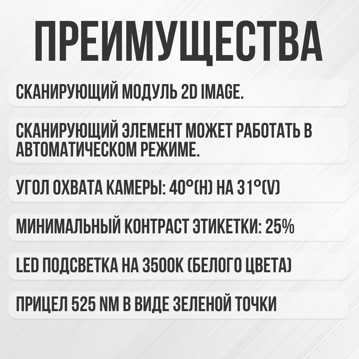 | Минимальная контрастность штрих-кода | 25 % |