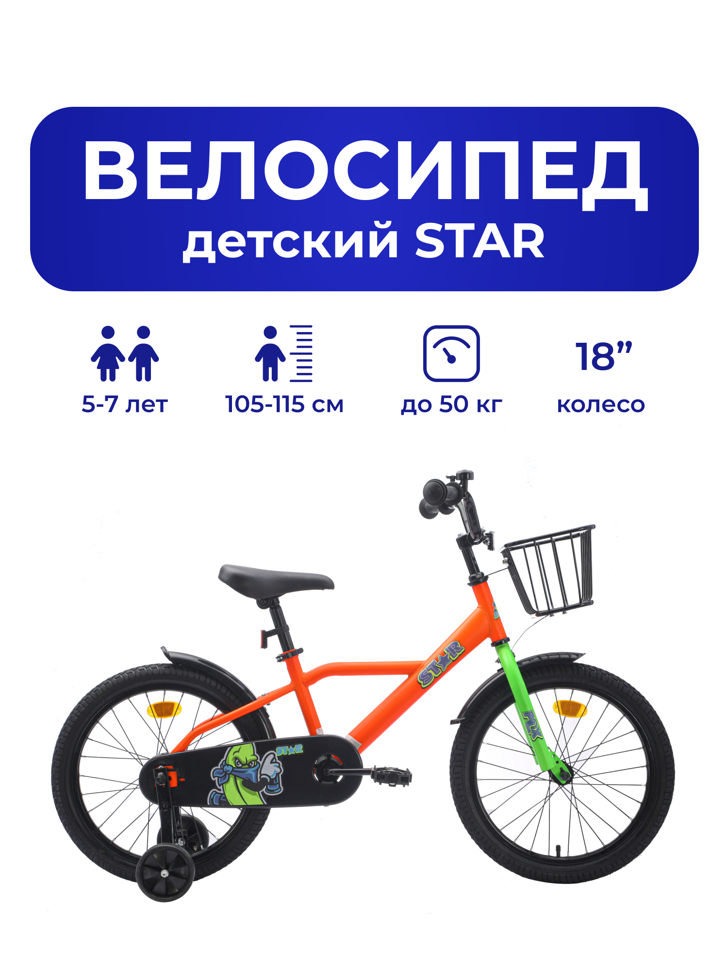 Велосипед детский 701-18" STAR / оранжевый / на рост: 110-130см или от 5 до 7 лет информация: