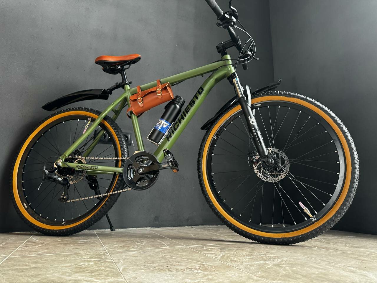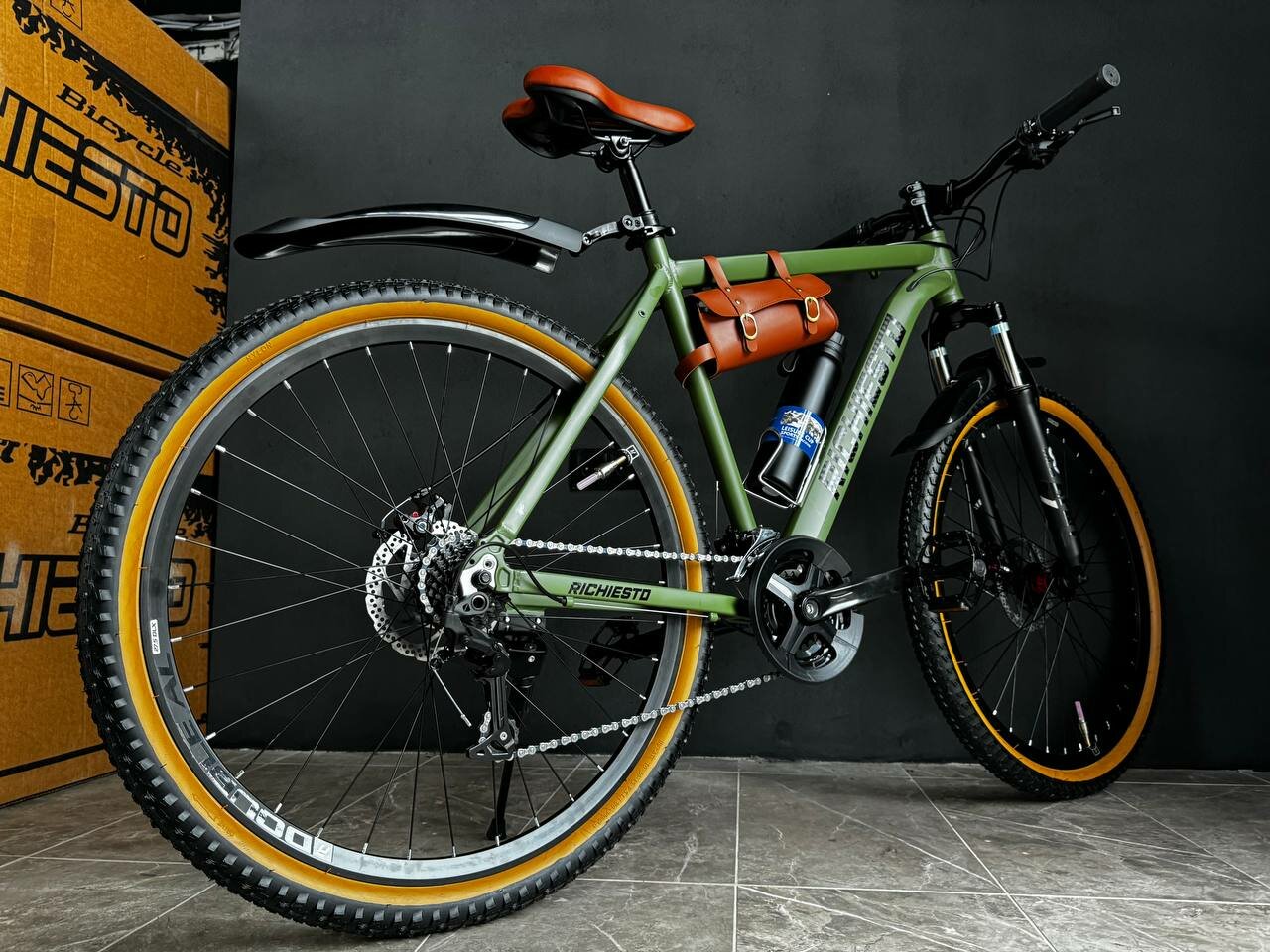 Велосипед 27.5 Richiesto алюминиевая рама 21" Горный Взрослый/Подростковый Лёгкий, зеленый/коричневый информация: