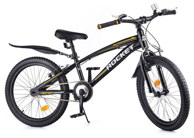 Велосипед детский 2-х колесный 20" ROCKET, цвет черный/желтый, модель 2023 года