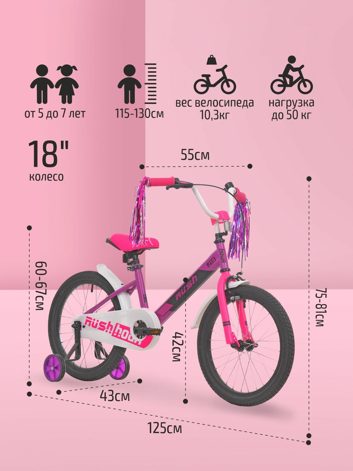 Велосипед двухколесный детский 18" дюймов RUSH HOUR J18 рост 115-130 см для девочки фиолетовый информация: